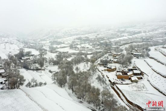 原標(biāo)題:甘肅定西黃土高原現(xiàn)雪凇奇觀