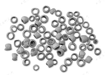 在出土的文物中,有一件連珠紋釉陶杯。這是一件玻璃態(tài)水杯,出土?xí)r人們還發(fā)現(xiàn)了一些疑似杯子的殘片,在同一墓坑中還同時(shí)出土了大量料珠。這個玻璃態(tài)水杯紋飾獨(dú)特,通體藍(lán)色釉飾,底部手握處,竟然設(shè)計(jì)有7圈珠紋。顯然,這些凸出的珠紋,除了美觀外,還可以增加摩擦,避免杯子從手中滑落,當(dāng)然也不排除珠紋還有其他含義。
