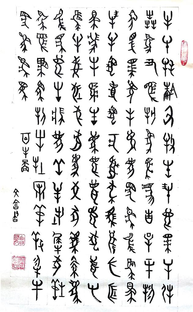 牛,是我國先民最早馴化的哺乳動物,因此,也是中國最早的象形文字符號。考古發(fā)現(xiàn)殷商時期比較成熟的漢字就刻在龜板牛骨上,被命名為甲骨文,稱為漢文字之祖。漢文字經(jīng)過篆隸楷草演變至今,牛字始終沒有脫離它的象形基因。