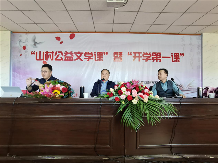 中國甘肅網9月6日訊 9月6日上午九點,由北京師范大學國際寫作中心、武威市教育局、武威市文體廣電和旅游局、涼州區(qū)教育局共同主辦的“山村公益文學課”暨“開學第一課”在武威第十一中學開講。活動由武威第十一中學趙衛(wèi)國校長主持。諾貝爾文學獎獲獎作家、北京師范大學國際寫作中心主任莫言教授以《讀書與寫作》為題,為十一中的師生講了一堂別開生面、深入淺出的寫作課。隨后,北京師范大學國際寫作中心主任助理翟文鋮教授、西北師范大學傳媒學院院長徐兆壽教授,分別就同學們的作文進行了現(xiàn)場指導。參加此次活動的還有北京舒同文化研究會會長王振先生、北京師范大學國際寫作中心主任助理張曉琴教授。