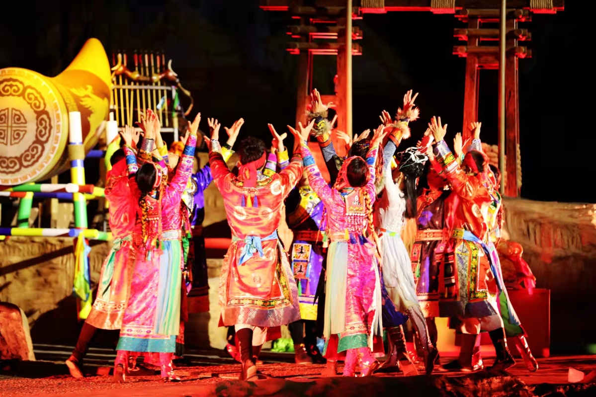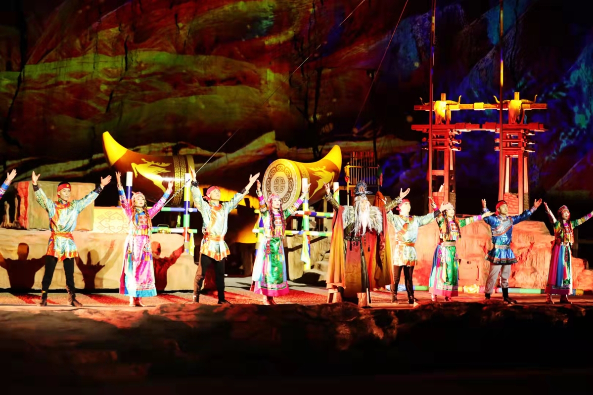 “阿蘭拉格達”裕固族語為“紅色的山”。光影演繹《阿蘭拉格達》以當?shù)卦9套辶鱾鞯纳裨捁适赂木幎?,將七彩丹霞之美和現(xiàn)代藝術(shù)完美結(jié)合,以“沉浸”的藝術(shù)形式展現(xiàn),給游客帶來身臨其境的互動體驗享受。