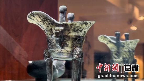 圖為酒泉夜光杯廠里陳列的夜光杯茶藝文化產(chǎn)品——精品懸環(huán)玉壺。王牧雨