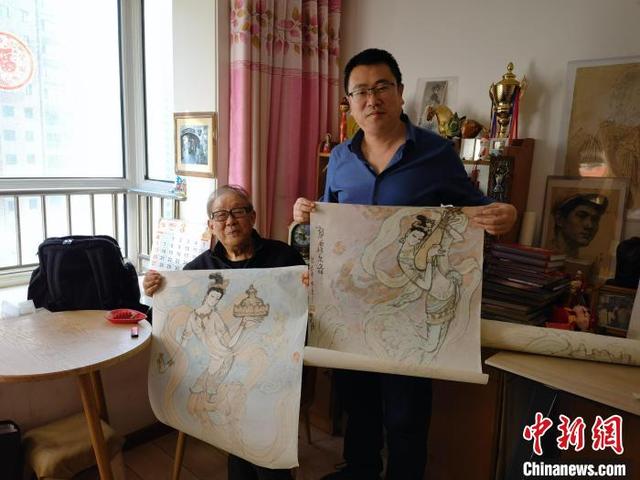 3月上旬,《絲路花雨·誕生》作者陳曉斌(右)拜訪今年86歲的舞美設(shè)計(jì)師李明強(qiáng)(右)老先生?!⊥跸让稀z