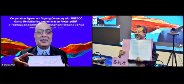 與創(chuàng)新項目與聯(lián)合國教科文組織技術援助合作協(xié)議簽約儀式,旨在運用甘肅文化和創(chuàng)意資源推進文化遺產保護傳承與創(chuàng)新發(fā)展。
