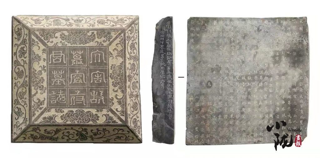 甬道正中出土墓志一合,時(shí)代明確,內(nèi)容豐富,顯示墓主為吐谷渾末代國(guó)王慕容諾曷缽第三子,“大周云麾將軍守左玉鈐衛(wèi)大將軍員外置喜王”慕容智。墓志首次提及武威南山區(qū)“大可汗陵”的存在,墓志左側(cè)面還刻有兩行利用漢字偏旁部首合成的文字,初步判斷為吐谷渾文,是目前所見依據(jù)漢文創(chuàng)造的年代最早的游牧民族文字。