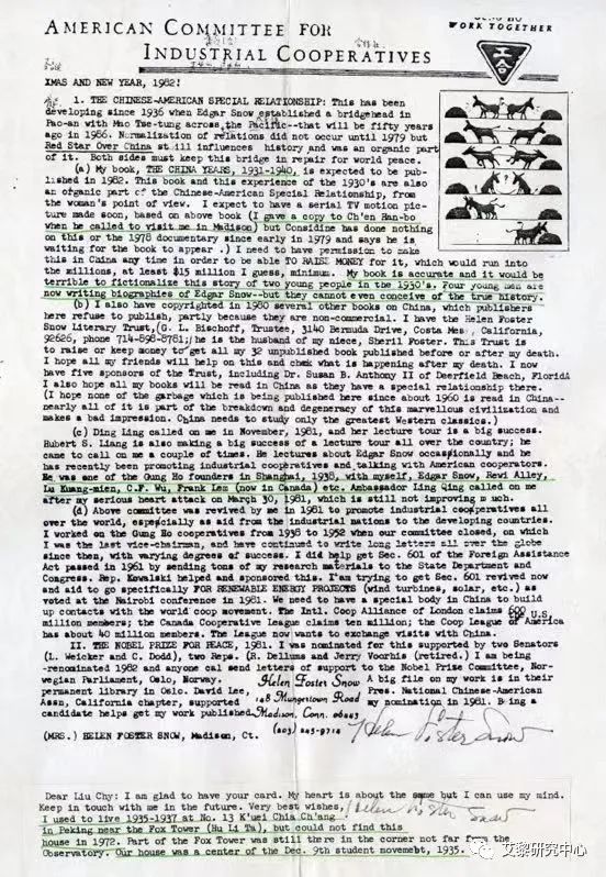 ?。ê?middot;斯諾的工合美國委員會信箋)