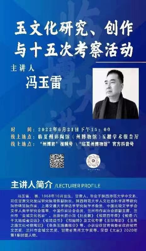 為認(rèn)真貫徹落實省第十四次黨代會精神,進一步弘揚中國玉文化和民族精神,推動玉文化傳承及玉文化文創(chuàng)產(chǎn)業(yè)發(fā)展。6月21日下午,甘肅文化發(fā)展研究院常務(wù)副院長馮玉雷受邀在臨夏州彩陶館(州博物館)學(xué)術(shù)報告廳作了題為《玉文化研究、創(chuàng)作與十五次考察活動》的學(xué)術(shù)講座。
