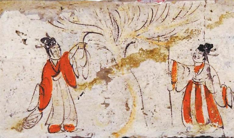 采桑圖 出自嘉峪關(guān)魏晉墓磚畫