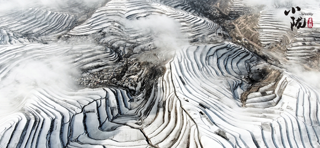 晨間的空氣因落雪更加清新,就像這漫山的雪,美不勝收,沁人心脾;遠(yuǎn)處茫茫青山,近處點(diǎn)點(diǎn)村落,梯田曲線蜿蜒綿長(zhǎng),展現(xiàn)著宕昌獨(dú)特的美。
