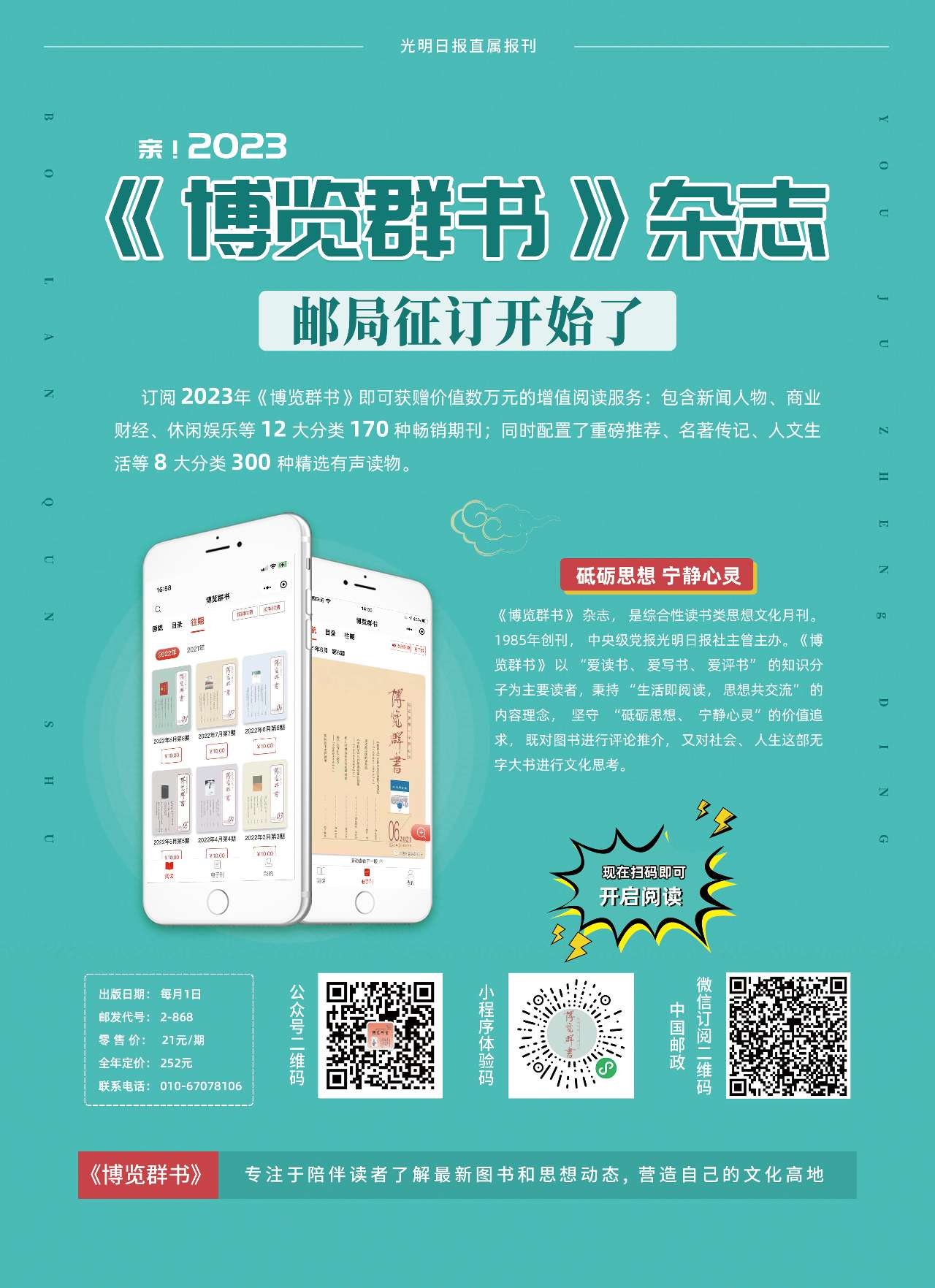 (由北京市報(bào)刊發(fā)行局青年團(tuán)隊(duì)設(shè)計(jì)的《博覽群書(shū)》2023年征訂廣告,點(diǎn)擊最后一個(gè)二維碼即可完成訂閱)