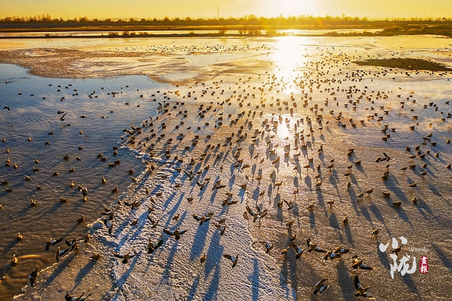 “蒹葭蒼蒼,白露為霜。所謂伊人,在水一方。”石羊河國家濕地公園因這群水鳥的曼舞翩躚、娉婷裊娜,呈現(xiàn)出令人陶醉的風景,當冬日午后的陽光鋪在河面上,可愛的“小精靈們”便臥于河面,愜意地曬著太陽,“圓潤”的身體隨著波濤慵懶搖曳,搖曳出了《詩經》的綿綿余韻。