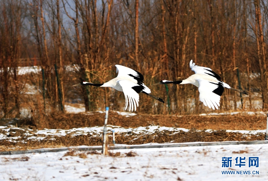 【中央媒體看甘肅】甘肅張掖:丹頂鶴雪地起舞“秀”身姿