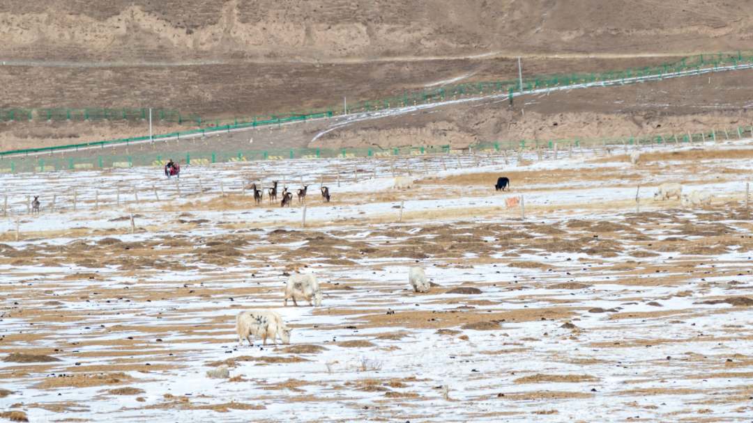 近日,在武威市天祝藏族自治縣抓喜秀龍草原上,野生的狍鹿和牧民家養(yǎng)的白牦牛同食牧草,構(gòu)成一幅和諧動(dòng)人的自然圖景。張廷愛攝。
