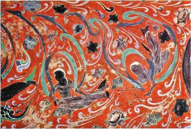 公元421一433年間,北涼占據(jù)了敦煌,莫高窟也第一次正式開始大規(guī)模的營造。這次營造活動的內(nèi)容,包括268、272窟的改建和275窟的新建,以及三個洞窟按各自的功能統(tǒng)一計劃和安排繪制了壁畫和塑像。這樣,莫高窟崖壁上首次出現(xiàn)了一組可供僧侶們禪修、朝拜與進行大眾佛教活動的獨具特色而又有一定規(guī)模的佛教建筑。整體北朝時期,莫高窟所營造的洞窟,在崖面上以十六國時代的三個洞窟為中心向南北兩邊擴展延伸,南面接268窟向南至246窟,其中256窟為后代擴建;北面接275窟向北,分上下兩層,上層從454窟周圍開始至428窟,下層285窟開始至305窟(該層為現(xiàn)存崖面上的一介夾層,北至321窟,南至65窟)。這三條線上的洞窟加起來共有50多座。另外,這些洞窟都是懸空開鑿。當(dāng)時,莫高窟曾有過在崖面的最底層營造洞窟的嘗試。例如487、488、489諸窟與北涼、北魏窟在同一垂直面上,低于現(xiàn)在的地面五米左右,洞窟地面可能與當(dāng)時的大泉河床底面平行,因其無法解除洪水和積冰給其帶來的危害,不久這些洞窟被廢棄不用,以后也未曾再于這一平面營造過洞窟。隋代的莫高窟崖面,是在先代窟群崖面的基礎(chǔ)上向南北兩頭拓展。當(dāng)時莫高窟崖面上的洞窟是上下兩層,上層248窟至428窟一段,下層285窟至305窟一段。隋代開始,上層接428窟向北,營造了427窟至376窟一段,接248窟向南營建了246、244、242諸窟;下層即現(xiàn)在崖面上的夾層,接305窟向北營造了306窟至317窟一段,接285窟向南修建了282窟至64窟一段。經(jīng)過隋代的營造,莫高窟窟群崖面已較完整而又頗具規(guī)模,上下兩層洞窟懸空開鑿在600多米長的崖面上,上層南起242窟,北至376窟,下層南起64窟,北至317窟,共計窟龕大小140余。同今天密密麻麻如同蜂窩似的崖面比起來,當(dāng)時崖面上的景致則獨具一格。這種情況在敦煌周圍其他一些小型石窟群中至今還可看到。