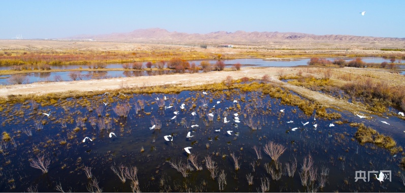 陽春三月,位于甘肅省武威市民勤縣、地處石羊河下游的亞洲最大沙漠水庫——紅崖山水庫,迎來大批白琵鷺、灰鶴、鳳頭鸊鷉、蒼鷺、大雁等候鳥游弋覓食、追逐嬉戲、展翅翱翔。