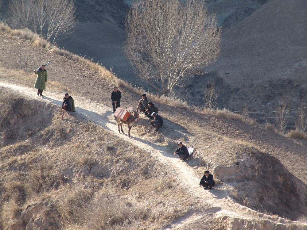 環(huán)縣道情皮影戲班曾經(jīng)趕著驢四處唱戲的場(chǎng)景。(環(huán)縣融媒體中心供圖)