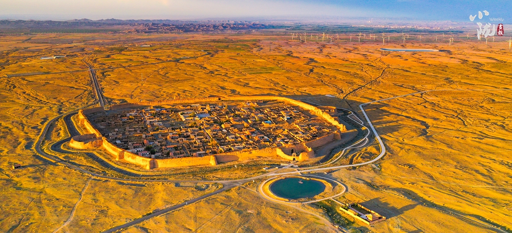 永泰古城堡墻由黃土夯筑而成,周長1717米,墻高12米,城基厚6米,占地面積318畝。從高處俯視,整座城確實狀若一只巨龜伏在戈壁灘上,維妙維肖。龜城首尾足爪俱全,將其每個部位在軍事上的應(yīng)用都發(fā)揮到了極致。