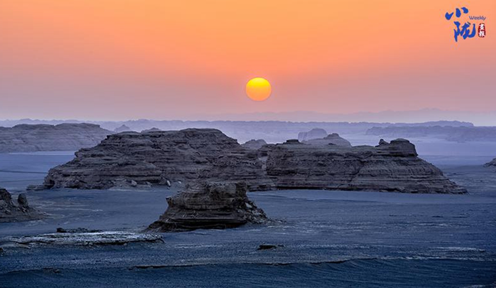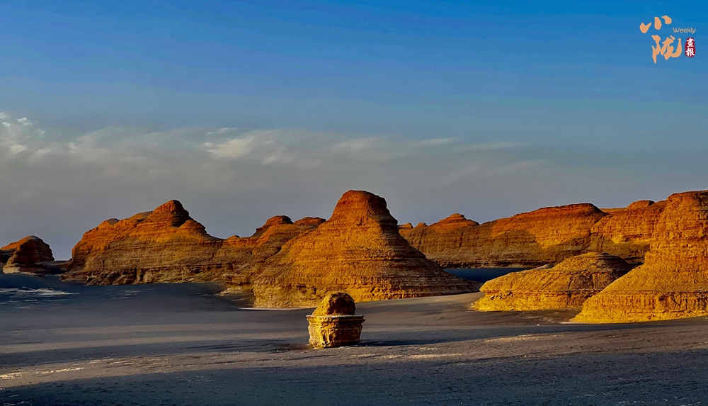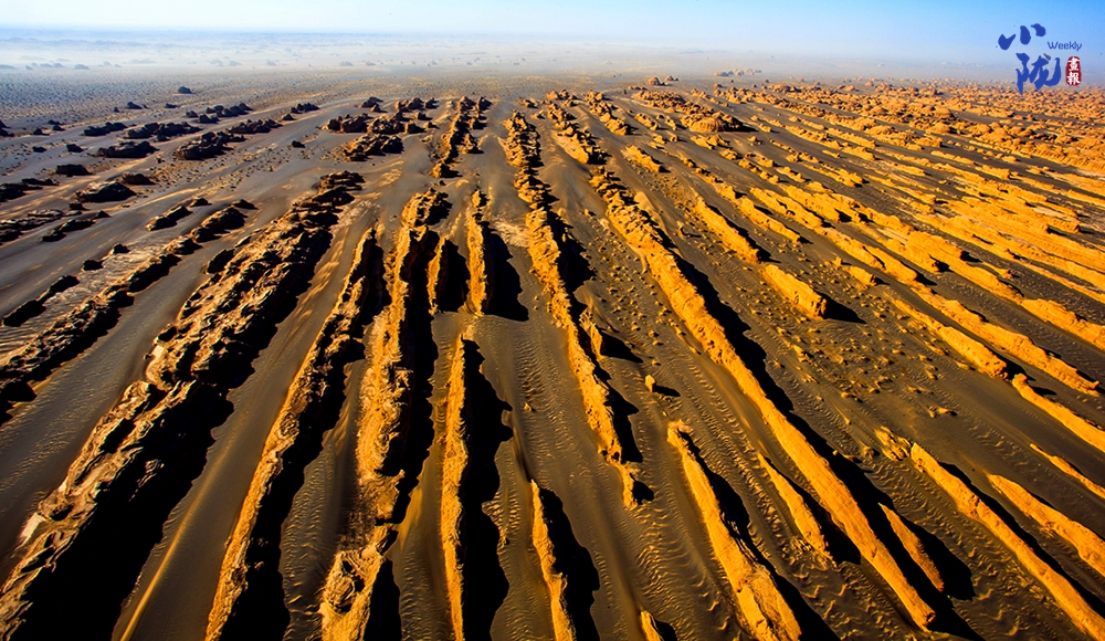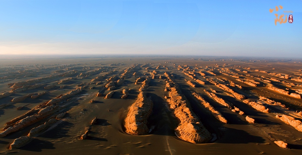 一隊隊整齊排列的雅丹像是整裝待發(fā)、氣勢磅礴的遠(yuǎn)航艦隊,在浩瀚無垠的漠海上劈波斬浪,蔚為壯觀,實屬罕見。