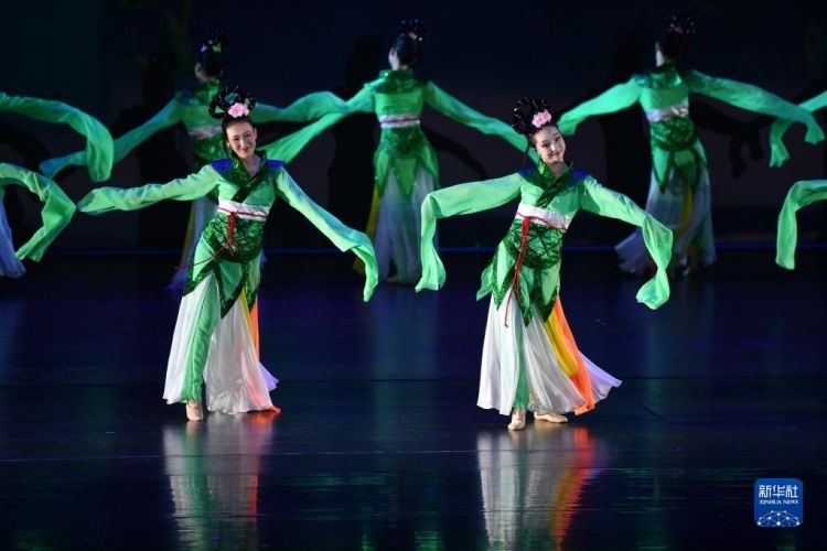 中國殘疾人藝術(shù)團演員在敦煌大劇院表演大型情景音畫劇《千手千眼》(6月18日攝)。