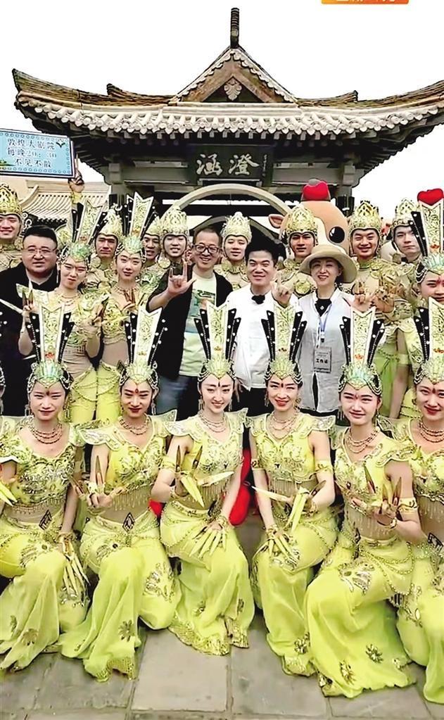 在大家爽朗的笑聲中,駝隊(duì)載著尊貴的客人來(lái)到月牙泉畔。在這里,一個(gè)神秘人物和團(tuán)隊(duì)即將登場(chǎng)。就在大家駐足之時(shí),舞劇《千手觀音》領(lǐng)舞邰麗華的現(xiàn)身讓東方甄選甘肅行所有成員驚喜不已。“俞老師好,《千手觀音》的故鄉(xiāng)是敦煌,聽(tīng)說(shuō)你們要來(lái)敦煌,我們特意來(lái)到月牙泉邊,讓世界各地的人們看到敦煌文化。”