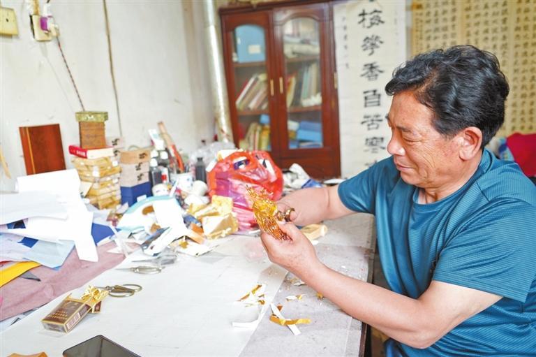 原標題:巧用廢棄錫箔紙 平?jīng)雒耖g藝人剪出“千梅圖”
