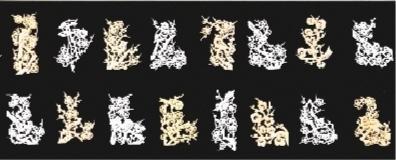 所剪的梅花枝干千姿百態(tài),變化多端,有粗有細、有長有短。梅花花朵有大有小,有的含苞未放,有的正在盛開。所剪的喜鵲也是形態(tài)多樣,有的在枝頭歡唱,有的在花間飛翔,有的竊竊私語,有的比翼雙棲,給人以喜氣又可愛的視覺效果。共分為8幀圖卷,分別為《寒梅吐艷》《喜梅報春》《一門喜事》《雙喜盈門》《喜事連連》《梅開五?!贰兜歉咄h》《喜上眉梢》。