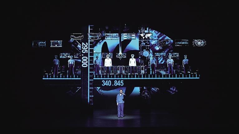 據(jù)了解,舞臺(tái)裝置上呈現(xiàn)出軍事工業(yè)的莊重感,如歌如畫般營(yíng)造出了核潛艇極限下潛步步驚心的緊張氛圍,同時(shí)也讓觀眾近距離地走近了英模的成長(zhǎng)歷程與內(nèi)心世界。
