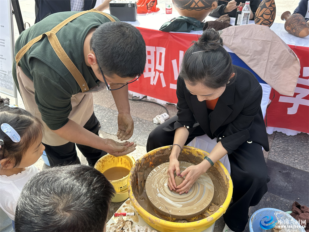 當(dāng)日的活動中,蘭州職業(yè)技術(shù)學(xué)院非物質(zhì)文化遺產(chǎn)學(xué)院的師生現(xiàn)場展示蘭州刻葫蘆、慶陽剪紙、木版年畫、甘南藏族唐卡、泥板畫、甘肅彩陶、掐絲琺瑯畫等非遺技藝,吸引了很多市民見此情景駐足觀看。其中甘肅彩陶展示尤為引人注目,不少市民上手體驗,在學(xué)院同學(xué)的幫助下體驗非遺文化。市民張女士說:“這是我第一次體驗制作甘肅彩陶,讓人印象非常深刻,了解了古人是如何制作彩陶的,也讓我'沉浸式'感受到非遺文化的魅力。”