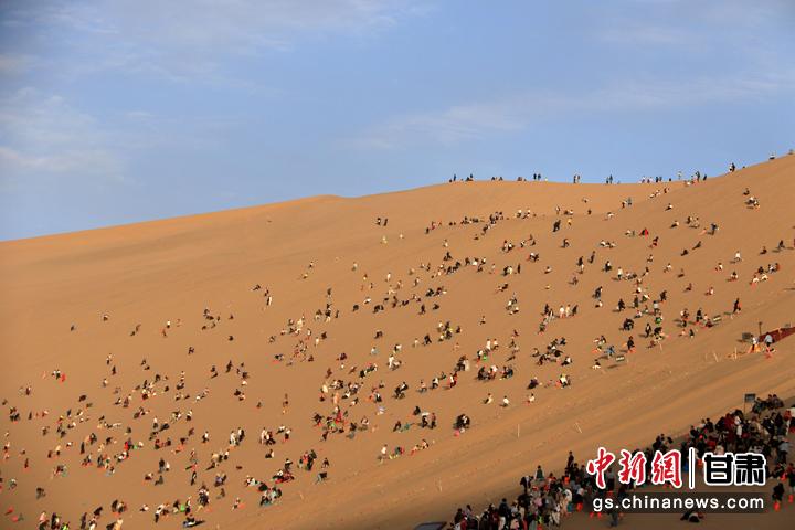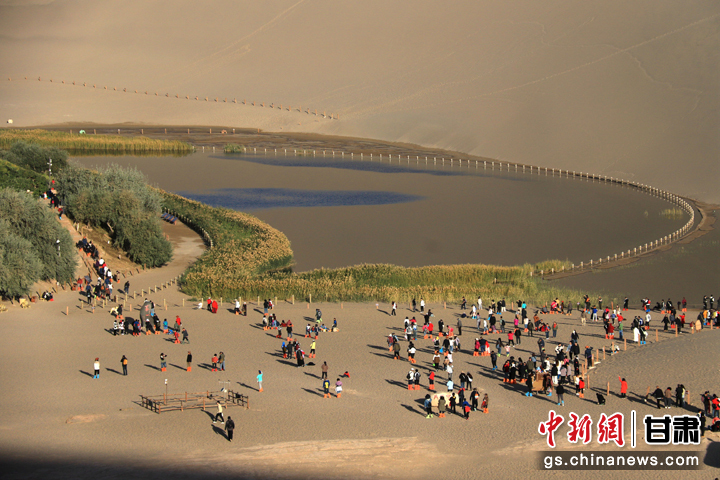 今年以來,甘肅省敦煌市旅游市場持續(xù)火熱。當(dāng)?shù)刂包c(diǎn)鳴沙山月牙泉在今年中秋國慶假期期間,累計接待游客首次突破300萬人次,比2019年同期增長35.5%,創(chuàng)歷史新高。(張曉亮 習(xí)剛)