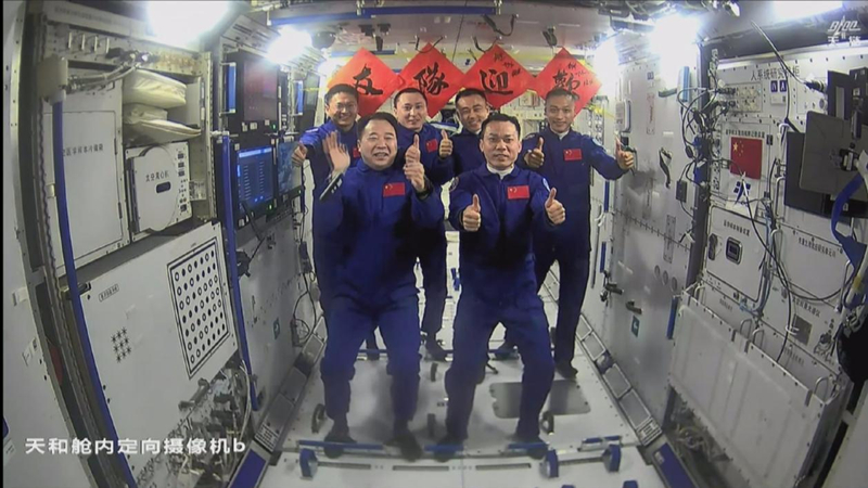 ?。?)三期并列:神舟17號(hào)與神舟16號(hào)兩個(gè)乘組會(huì)合,實(shí)現(xiàn)了我國(guó)三批航天員在空間站的首次大團(tuán)圓。
