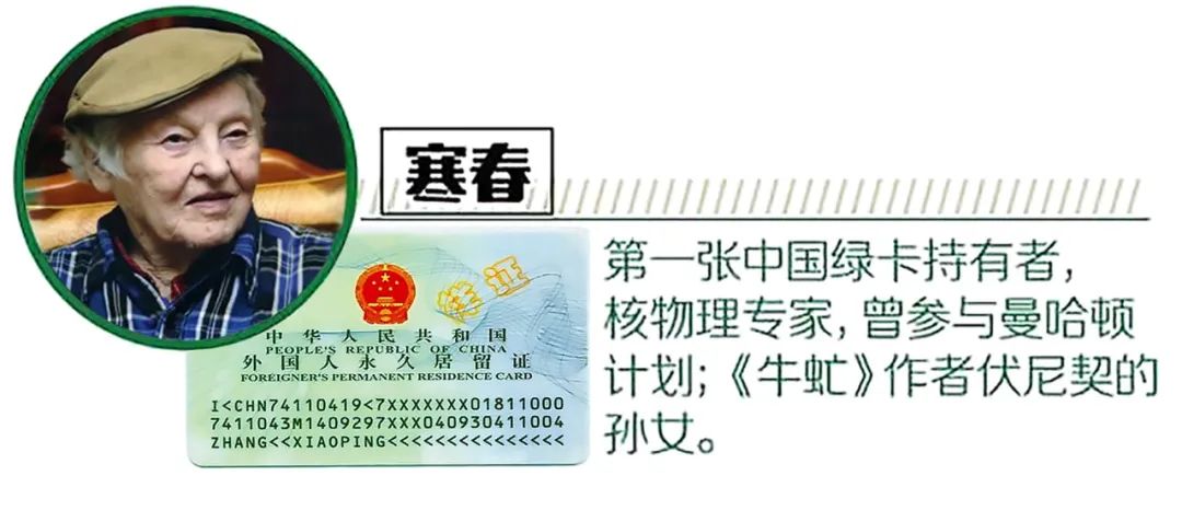 2004年8月15日,《外國(guó)人在中國(guó)永久居留審批管理辦法》正式頒布,規(guī)定外籍人申請(qǐng)合格者將獲得中國(guó)政府頒發(fā)的“外國(guó)人永久居留證”,我國(guó)正式開(kāi)始實(shí)施外國(guó)人永久居留證管理制度。人們仿照國(guó)際慣用說(shuō)法,稱中國(guó)開(kāi)始實(shí)施“綠卡”制度,中國(guó)“綠卡”進(jìn)入2.0時(shí)代。持證者在中國(guó)的居留地、住房和就業(yè)皆不受限制,出入中國(guó)國(guó)境無(wú)須再簽證。綠卡不是國(guó)籍的變更,但是拿到綠卡的外籍友人在中國(guó)出入境,工作、旅行、生活會(huì)更加方便。拿到中國(guó)第一張“外國(guó)人永久居留證”的是放棄了自己心愛(ài)的核物理研究,而且不畏難苦,扎根農(nóng)村,為中國(guó)的奶牛改良工作奮斗了一輩子的美國(guó)知名核物理學(xué)家寒春。