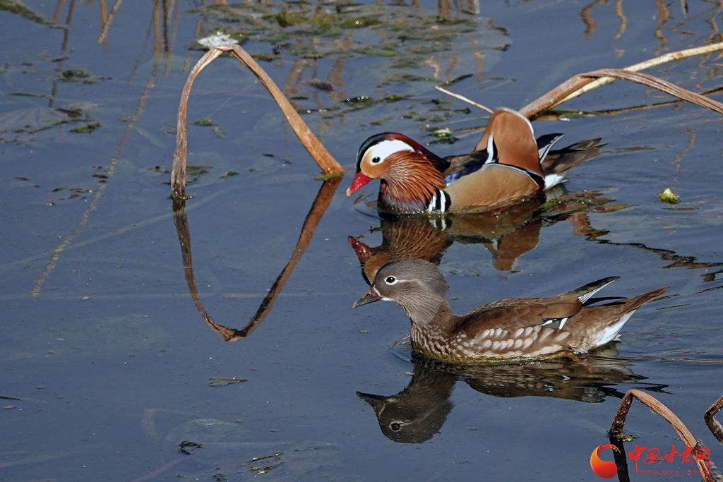 冬日的崇信縣龍澤湖,枯殘的荷葉、蓮蓬與枝干倒映水中,一株株枯荷挺著一身風(fēng)骨靜靜地佇立在湖中,鳳頭鸊鷉、鴛鴦、秋沙鴨、赤麻鴨等成群結(jié)隊(duì)的候鳥在枯荷間嬉戲,舞出了不一樣的冬韻。