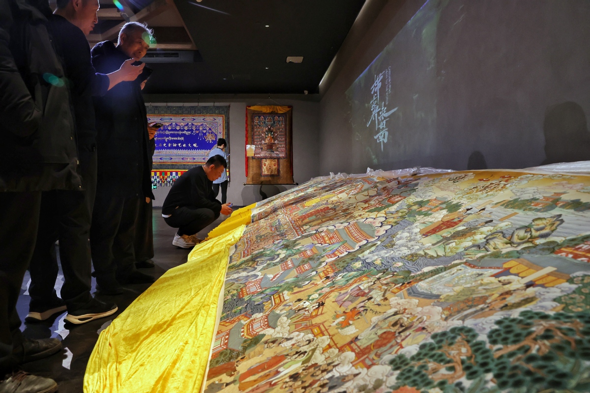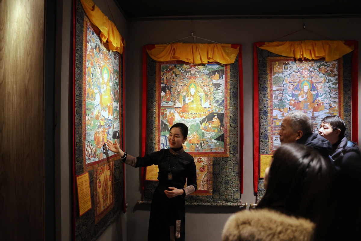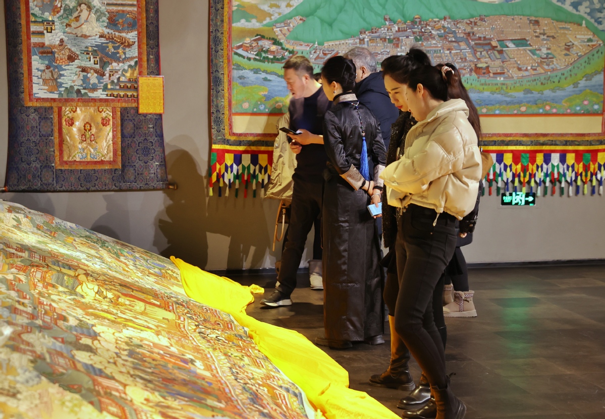 ?。ㄓ浾?nbsp;姜東)2023年12月26日,北京,觀眾在皇城藝術(shù)館參觀《甘肅甘南非遺文化藝術(shù)展》。近日,《甘肅甘南非遺文化藝術(shù)展》在北京皇城藝術(shù)館開(kāi)展。此次展覽主要展示了甘南藏族自治州非物質(zhì)文化遺產(chǎn)藝術(shù)作品《拉卜楞文化歷史彩繪藝術(shù)大觀》《藏族書法瑰寶》及甘南拉卜楞文創(chuàng)產(chǎn)品。