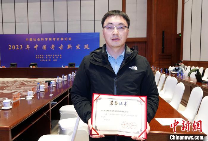 1月30日,2023年中國考古新發(fā)現(xiàn)在北京揭曉發(fā)布,肯尼亞共和國博高利亞湖舊石器時代遺址入選中國2023年國外考古新發(fā)現(xiàn),趙清坡代表項目領取榮譽證書在會場留影。中新網(wǎng)記者 孫自法 攝