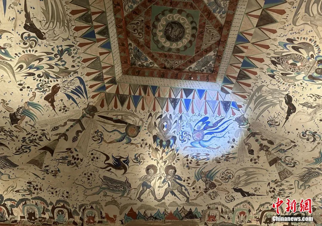 敦煌莫高窟第285窟(原大復制窟)窟頂?shù)姆恕⑴畫z圖像。丁思 攝
