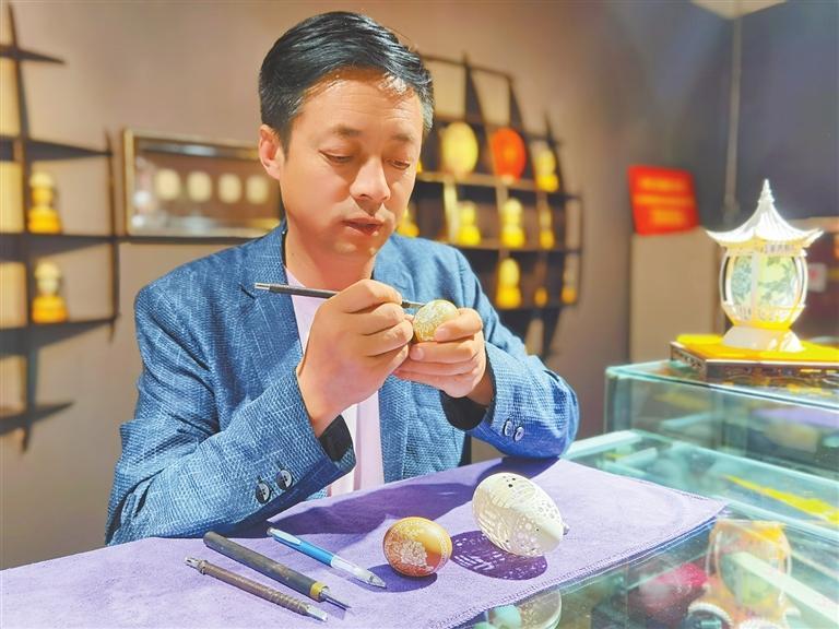 蛋雕改變了楊星國的生活,也改變了他對人生的追求。源于蛋雕藝術(shù)品呈現(xiàn)的精妙,慕名拜訪他的人很多,去他的工作室參觀或?qū)W習(xí),并向他請教問題時(shí),他都會(huì)細(xì)致、耐心地講解或演示,有時(shí)候還會(huì)讓游客自己上手體驗(yàn)。