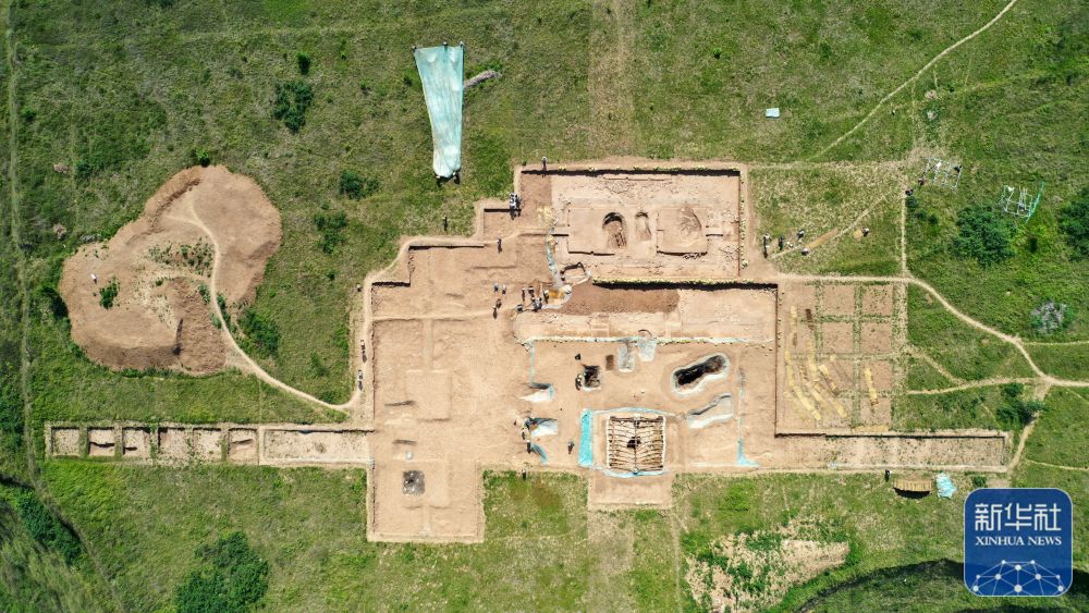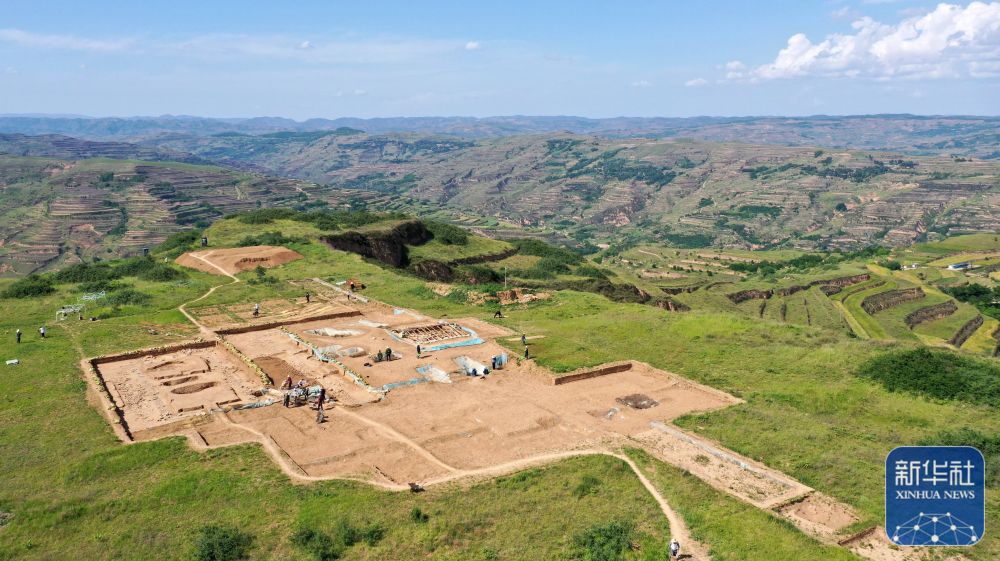 這是2022年6月10日拍攝的甘肅省隴南市禮縣四角坪遺址考古發(fā)掘現(xiàn)場(chǎng)(無(wú)人機(jī)照片)。新華社記者 郎兵兵 攝