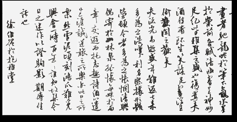 于是詞人騷客,寄快意于佳對(duì),詠雅事以妙韻。書家畫者,馳龍蛇于筆下,氤水墨于案前。各賦清幽,盡呈神妙,足紀(jì)此日雅集之盛也。復(fù)置美酒佳肴,環(huán)坐笑談,漫飲徐吟,足盡浮生偷閑之歡矣。