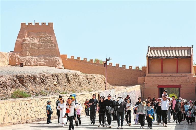 游客在嘉峪關(guān)關(guān)城景區(qū)游覽。 新甘肅·甘肅日?qǐng)?bào)記者 馮樂凱
