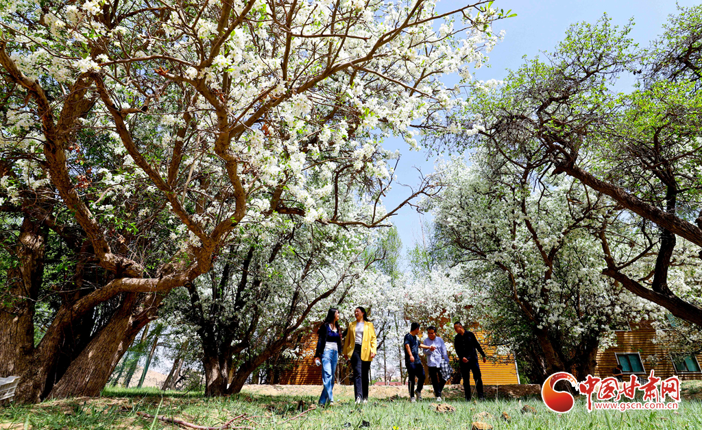 初夏時節(jié),位于祁連山下的山丹縣大馬營鎮(zhèn)焉支花谷里,梨花、楸子花、海棠花等各色花朵盛放,游人和孩子們的嬉笑聲不絕于耳,整個花谷形成動靜結(jié)合的美。
