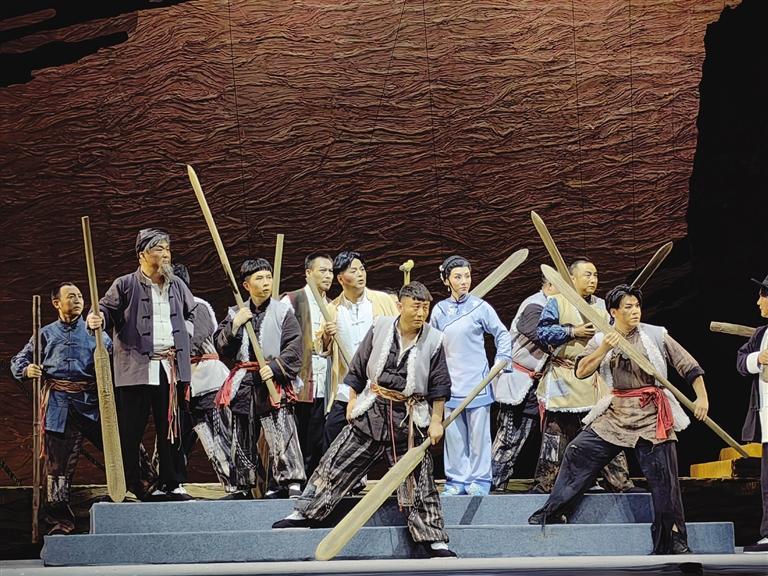 中國甘肅網(wǎng)5月21日訊 據(jù)蘭州晚報報道(記者 高宏梅 文/圖)酣暢淋漓的“花兒”唱出了黃河兒女的人間悲喜,韻味濃厚的“嘛簧”一唱眾幫,隴劇戲曲張力無限,“羊皮筏子賽軍艦”的熱血故事成就走心之作……5月19日晚,國家藝術(shù)基金資助項目原創(chuàng)隴劇《大河東流》在黃河劇院成功首演,隴劇“梅花獎”甘當配角,“青春力量”首挑大梁,出新出彩的優(yōu)異表現(xiàn)贏得滿堂彩。