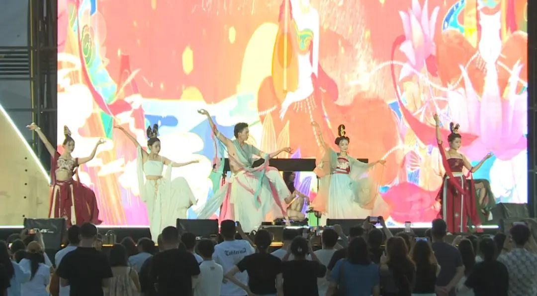 本次電音節(jié)以古老的“絲綢之路”為靈感源泉,巧妙融合了敦煌獨(dú)特的文化藝術(shù)和現(xiàn)代音樂(lè)元素。活動(dòng)現(xiàn)場(chǎng),觀眾沉浸在五彩斑斕的燈光秀和震撼人心的音響效果中,還能親身參與繪制飛天圖案、體驗(yàn)傳統(tǒng)樂(lè)器演奏,深度感受敦煌的文化藝術(shù)魅力。
