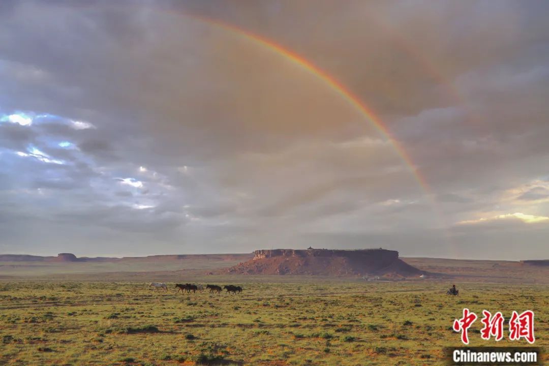 彩虹下的“草原敦煌”——阿爾寨石窟。張政國(guó) 攝