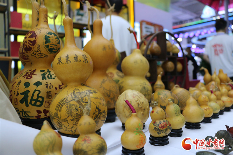 走進(jìn)第三十屆蘭洽會(huì)非遺文創(chuàng)館,陳氏雕刻葫蘆的第二代傳人陳兵正在展臺(tái)前為駐足參觀的群眾講解著刻葫蘆的過(guò)程。