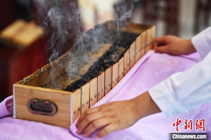 7月16日,甘肅省平?jīng)鍪徐`臺縣皇甫謐針灸康養(yǎng)館內(nèi),工作人員對患者進行推拿治療。2006年,靈臺皇甫謐針灸術(shù)入選第一批甘肅省非物質(zhì)文化遺產(chǎn)名錄。靈臺作為皇甫謐故里,當?shù)孛癖姺浅UJ可中醫(yī)康養(yǎng),針灸、拔火罐、推拿、葫蘆灸、火龍灸(督脈灸)等中醫(yī)特色療法受到了很多人的青睞,當?shù)毓俜揭餐ㄟ^舉辦大型節(jié)會等助推中醫(yī)康養(yǎng)產(chǎn)業(yè)發(fā)展。 皇甫謐是針灸醫(yī)學鼻祖,其《針灸甲乙經(jīng)》已在多個國家被廣泛傳播應用。  中新社記者 李亞龍 攝
