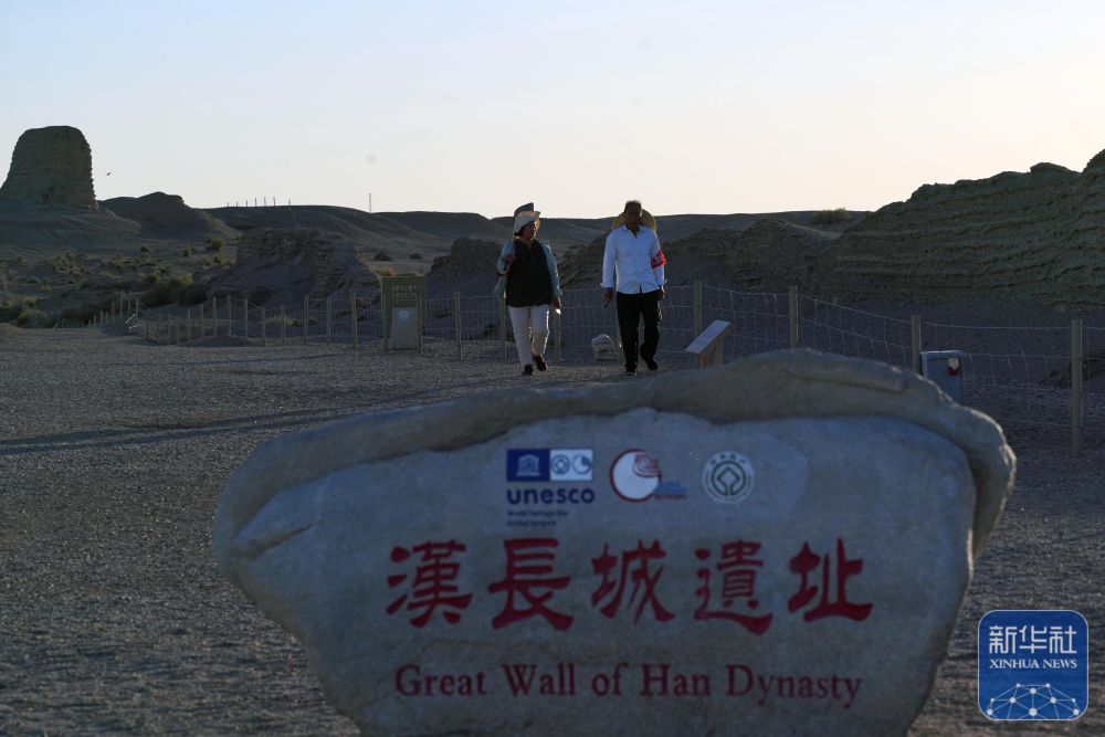 玉門關(guān)外,大漠戈壁,漢長城遺址巍然屹立,訴說著歷史上的邊塞風(fēng)云和絲路滄桑。