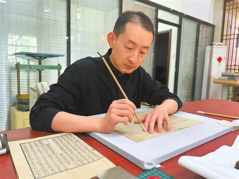 “我們這個工作更重視實操能力,一般新手都要先從觀摩開始,最先上手的工作普遍是補(bǔ)蟲洞。”杜泓瑞說,“古籍修復(fù)實際上是一門交叉學(xué)科,從古漢語到繪畫美術(shù),再到傳統(tǒng)古籍裝幀出版,需要學(xué)習(xí)的課程和掌握的知識涉及許多領(lǐng)域,而隨著年輕人的加入,會將很多新式手法和理論運用到修復(fù)中,但也需要年輕人沉下心不斷對古籍修復(fù)理論化、課程化進(jìn)行深入探索。”