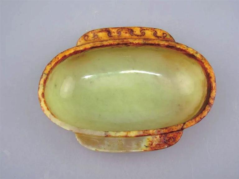 羽觴,多美妙風(fēng)雅的名稱(chēng),它的基本形制是扁橢圓,弧形壁,淺腹平底,餅形足或高足,口緣兩側(cè)各有一個(gè)半月形耳或方形耳。這種形制始于春秋戰(zhàn)國(guó),是由橢杯、舟等演變而來(lái),盛行于秦漢至魏晉南北朝,唐代以后便很少見(jiàn)到。其材質(zhì)有漆木、青銅、金、銀、玉、陶等,其中玉耳杯由諸侯王、列侯等身份地位比較高的人使用,漆耳杯使用者范圍較廣泛,上至帝王諸侯,下至一般貴族均可使用。