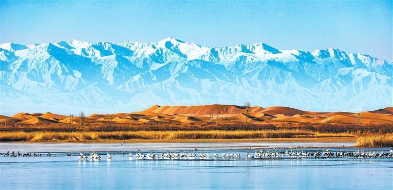 同樣發(fā)源于崗格爾肖合力雪山的討賴河,是流經(jīng)甘肅嘉峪關(guān)市唯一的地表河流,歷史上是黑河的一級(jí)支流,今天消失在了酒泉金塔縣的戈壁荒漠之中。“天下第一雄關(guān)”、明代萬(wàn)里長(zhǎng)城的西起點(diǎn)——嘉峪關(guān)關(guān)城,就是依托祁連山、討賴河、黑山等天然屏障,從三面拱衛(wèi)著河西四郡之一的酒泉郡、扼控河西走廊的咽喉。在邊墻最南邊的“長(zhǎng)城第一墩”——討賴河墩,就修筑在討賴河岸邊。