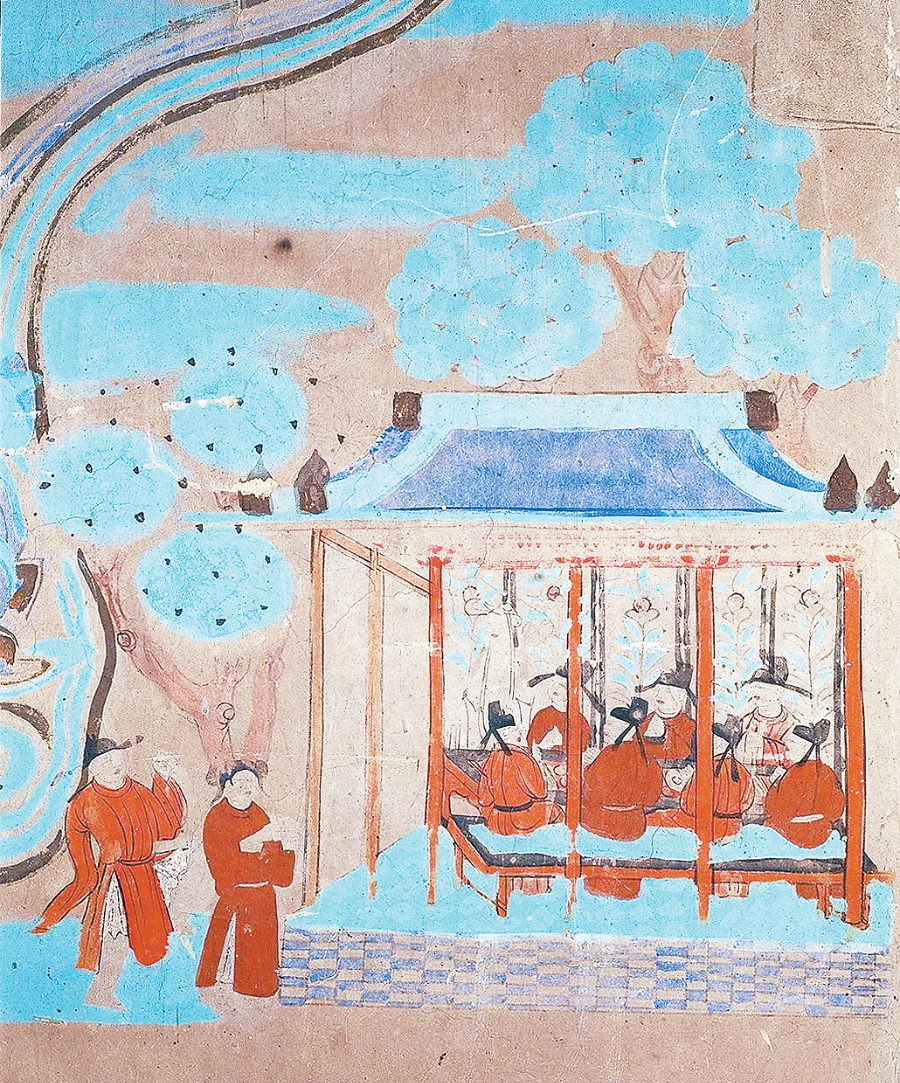 敦煌人好客,且有局必有酒。使節(jié)來(lái)訪,來(lái)一杯,朋友聚會(huì),來(lái)一杯。其間,還伴有舞蹈與音樂(lè),好不熱鬧,真是不喝盡興不罷休!